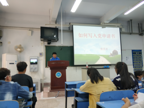 本次党课,张亚光书记紧紧围绕讲“为什么要递交入党申请书”、“写入党申请书有哪些要求”、“入党申请书大致的格式”三方面讲解了书写入党申请书的程序。并重点强调了书写入党申请书前,应阅读党章的重要性。期间举了三个例子来告诫同学们要对自己高标准、严要求,要有正确的动机,并把工作做好。